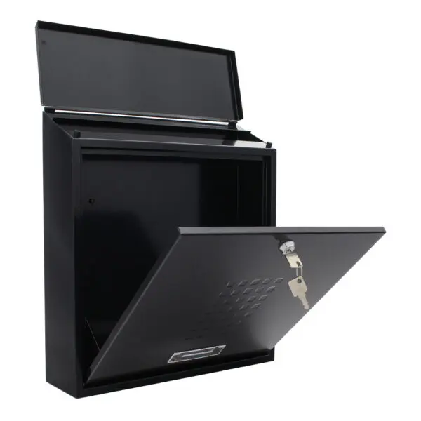 Der schwarzgraue Rottner Briefkasten Bolzano begeistert mit seinem hochwertigen Material und der klassischen Bauweise. Mit einer abgeschrägten Klappe und dem zarten karierten Muster an der Tür wirkt sein Design zeitlos elegant. Die Tür mit dem untenliegenden Anschlag und Sichtfenster mit Namensschild lässt sich durch das Zylinderschloss leicht öffnen. Zur einfachen Montage befinden sich das passende Montagematerial im Lieferumfang.