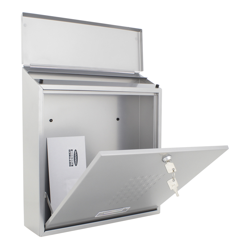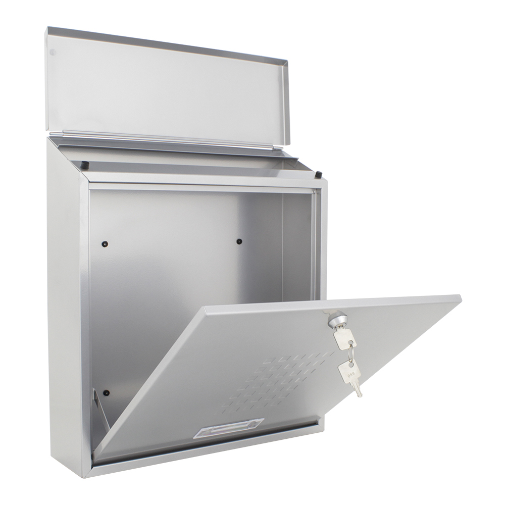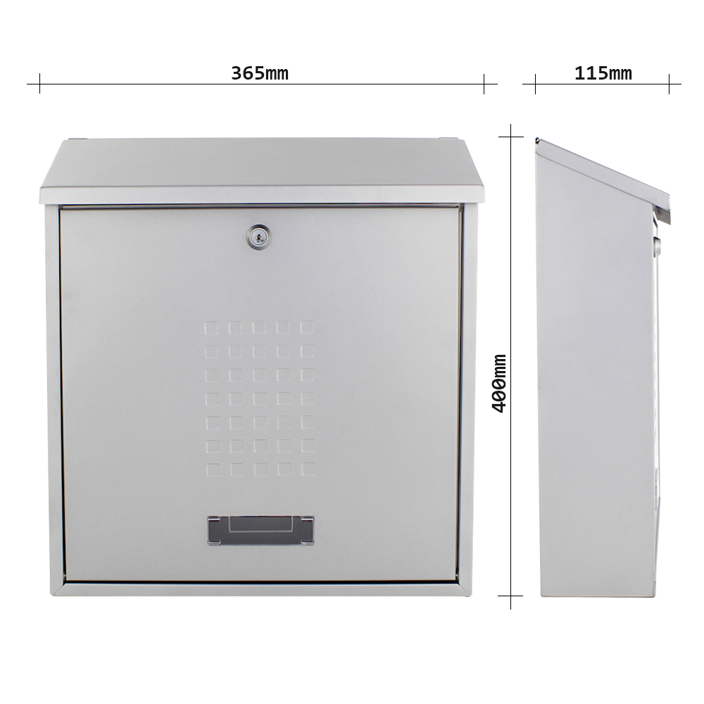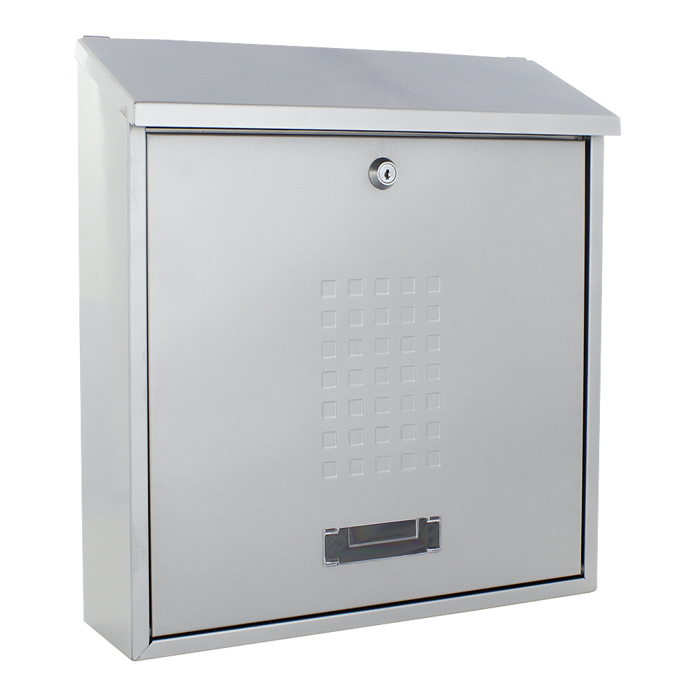 Der silberfarbene Rottner Briefkasten Bolzano begeistert mit seinem hochwertigen Material und der klassischen Bauweise. Mit einer abgeschrägten Klappe und dem zarten karierten Muster an der Tür wirkt sein Design zeitlos elegant. Die Tür mit dem untenliegenden Anschlag und Sichtfenster mit Namensschild lässt sich durch das Zylinderschloss leicht öffnen. Zur einfachen Montage befinden sich das passende Montagematerial im Lieferumfang.