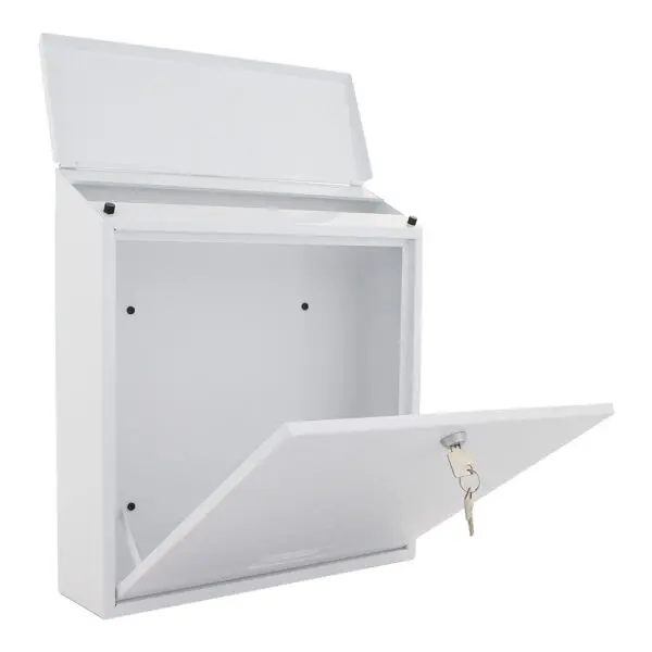Der weiße Rottner Briefkasten Bolzano begeistert mit seinem hochwertigen Material und der klassischen Bauweise. Mit einer abgeschrägten Klappe und dem zarten karierten Muster an der Tür wirkt sein Design zeitlos elegant. Die Tür mit dem untenliegenden Anschlag und Sichtfenster mit Namensschild lässt sich durch das Zylinderschloss leicht öffnen. Zur einfachen Montage befinden sich das passende Montagematerial im Lieferumfang.