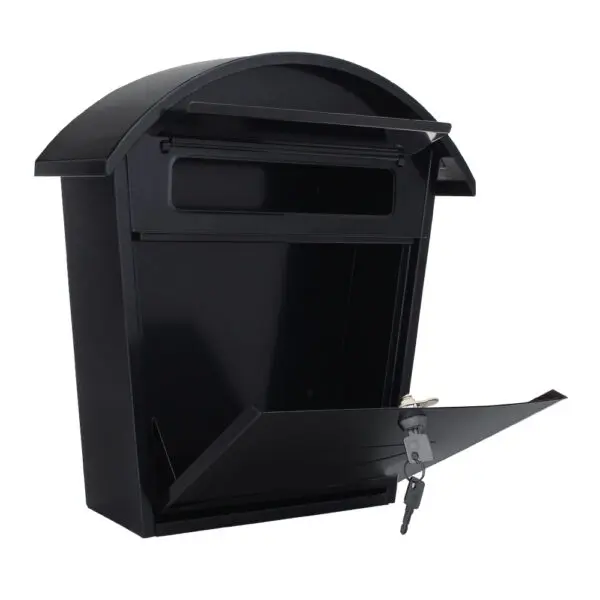Mit einem halbrunden, leicht vorstehenden Dach und einer dezenten Prägung ist der Rottner Briefkasten Jesolo ein Briefkasten, der sofort ins Auge sticht. Er besitzt eine Klappe mit einer kleinen Tropfnase. Die Tür zur Entnahme hat einen untenliegenden Türanschlag und schließt mit einem Zylinderschloss. Eine Bohrschablone und passendes Montagmaterial, welches die Montage erleichtert, finden Sie im Lieferumfang des schwarzgrauen Briefkastens vor.