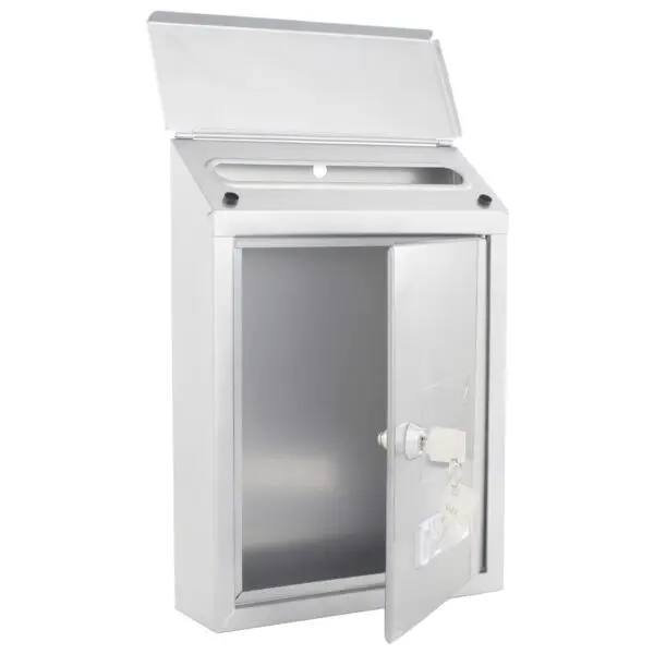 Ein Briefkasten, der allen Ansprüchen gerecht wird, ist der silberfarbene Rottner Briefkasten Udine aus pulverbeschichtetem Stahlblech. Seine schlichte Eleganz und das funktionelle Design versprechen einen perfekten Einklang mit Ihrer Hausfassade. Die schräg nach vorne abfallende Klappe bietet einen gewissen Schutz. Damit die Post trocken bleibt, ist eine Montage im wetterfesten Bereich sinnvoll. Der rückseitige Einwurf erlaubt auch eine Verwendung als Zaunbriefkasten. Damit Sie den Briefkasten fachgerecht befestigen können, befindet sich im Lieferumfang das passende Montagmaterial.