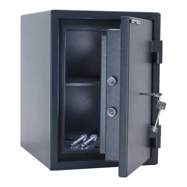 Ihre Dokumente wollen zuverlässigen Schutz gegen Diebstahl, Hitze und Feuer? Dann ist der feuersichere Dokumentenschrank Fire Hero 50 genau der richtige Tresor für Sie! Die massive Bauweise, Klasse 1 PN-EN 1143-1:2012 IMP mit polnischem Zertifikat und 30min Feuerschutz für Papier – das sind die Pluspunkte dieses stabilen Tresors. Der Fachboden lässt sich verstellen, sodass Sie Ihre Wertgegenstände, Sparbücher, Polizzen, Juwelen etc. bequem unterbringen können. Zur Montage verwenden Sie bitte das beiliegende Verankerungsmaterial, das im Lieferumfang enthalten ist.