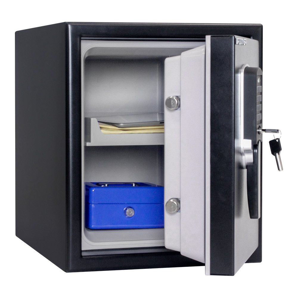 Die optimale Lösung zur Aufbewahrung wichtiger privater oder gewerblicher Dokumente – der Rottner Feuerschutztresor Fire Data 40 mit Elektronikschloss! Papierdokumente sind bis zu 120 Minuten vor Feuer geschützt. Der Tresor wurde dem UL-Test unterzogen, das bedeutet, dass der Tresor 2 h lang einer Temperatur von 1010° C ausgesetzt war und die Innentemperatur dabei immer unter 177° C geblieben ist. Die Einteilung der Dokumente und Wertgegenstände erleichtert ein verstellbarer Fachboden. Das Elektronikschloss ist einfach in der Bedienung und kann auch mit einem Notschlüssel geöffnet werden.