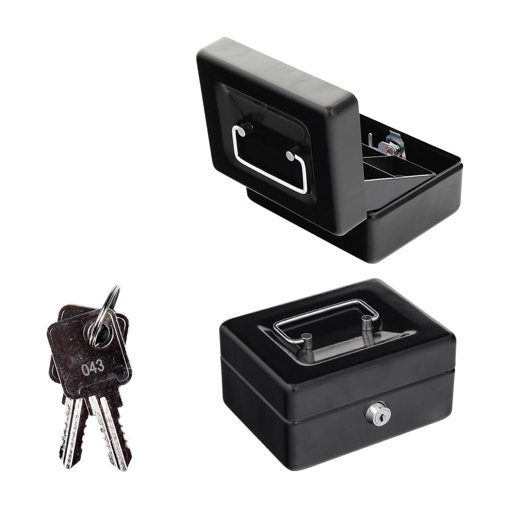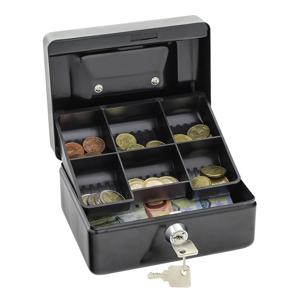 Die schwarze Rottner Geldkassette HomeStar Cash 1 ist eine kompakte Geldkassette. Die Griffgarnitur ist versenkt und vernickelt und somit platzsparend und rostfrei. Ein Zylinderschloss mit 2 Schlüsseln sorgt für Schutz vor ungewollten Zugriffen. Das Gehäuse und der Deckel der Geldkassette bestehen aus hochwertigem Stahl.