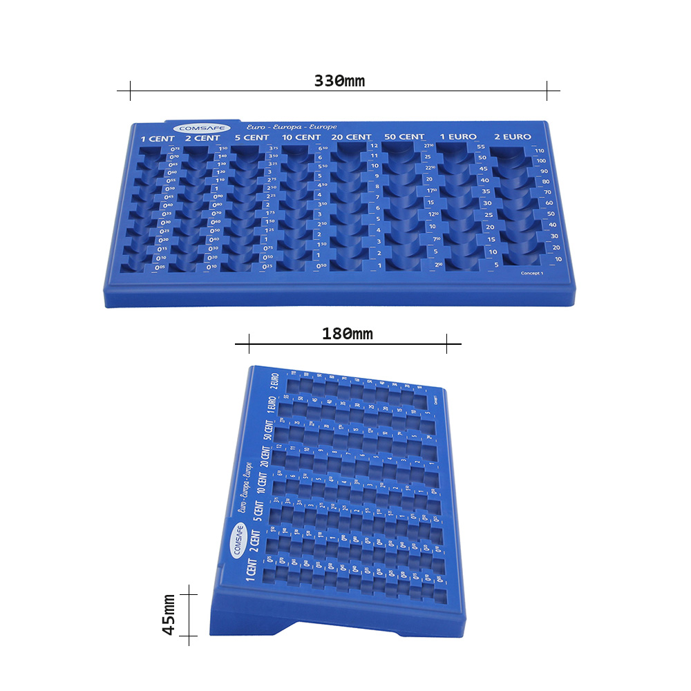 - einteiliges Geldzählbrett mit 8 Münzreihen (von 1 Cent bis 2 Euro)