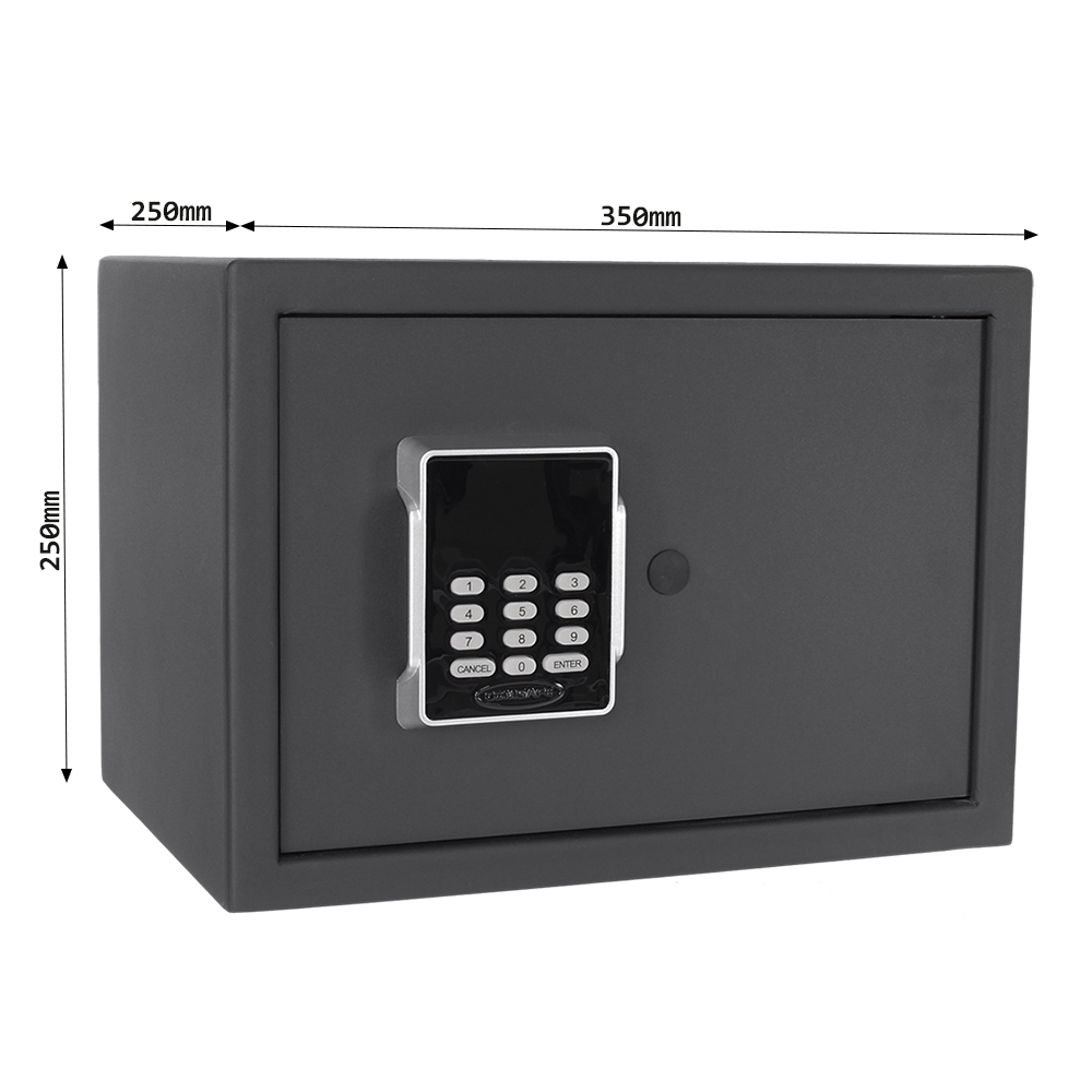 Der Hoteltresor Neptun 1 ist der ideale Aufbewahrungsort für die Wertgegenstände Ihrer Gäste. Pässe, Bargeld, Tickets – alle diese Dinge sind sicher im Hoteltresor verwahrt, der mit einem leicht zu bedienendem Elektronikschloss schließt. Im Notfall kann der Tresor mit Mastercode und Schlüssel (gleichschließend) geöffnet werden, der Gast braucht also keine Angst zu haben, dass er seinen Safe nicht mehr öffnen kann, falls er den Code vergisst. Der Gästecode wird nach dem Schließen für 5 Sekunden angezeigt. Ein Hoteltresor, der den Ansprüchen Ihrer Kunden gerecht wird.