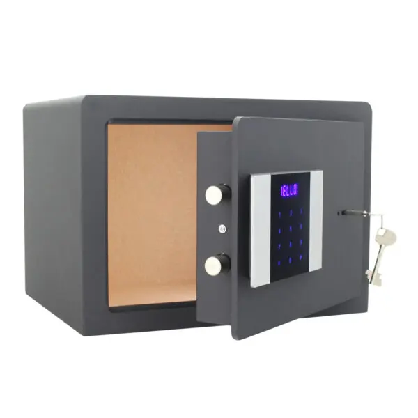 Sie sind auf der Suche nach einem hochwertigen Hoteltresor mit Elektronikschloss? Der Prestige 250 bietet alles, was ein Möbeltresor haben muss – der hochwertige Tresor hat eine Türstärke von 50mm und einen Korpus von 2mm. Die Scharniere sind innenliegend und das Öffnen und Schließen der Bolzen erfolgt automatisch ohne Drehgriff. Sehr praktisch ist die Innenbeleuchtung – Sie erkennen sofort den Tresorinhalt. Das Elektronikschloss mit LED Touchbedienfeld schützt zuverlässig Ihre Wertgegenstände vor ungewollten Zugriffen, ist leicht zu bedienen und kann im Notfall mit Schlüssel oder Mastercode geöffnet werden.