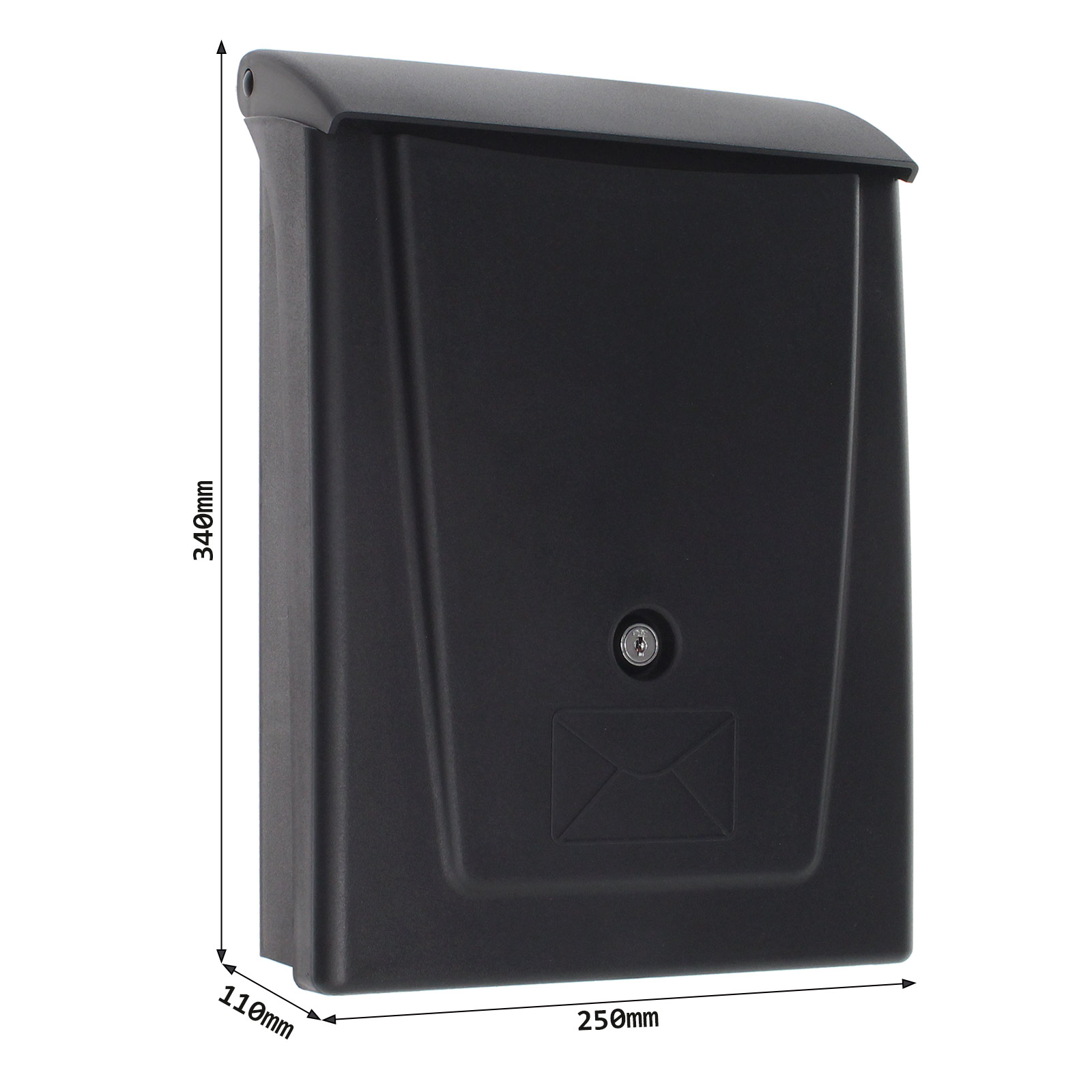 Die elegante schwarze Posta Mailbox aus UV-beständigem Kunststoff wird der neue Blickfang Ihres Zuhauses. Wenn Sie das Zylinderschloss öffnen (inkl. 2 Schlüssel), geht die Tür nach oben auf. Die darin befindliche Post wird mittels eines Postbefestigungshalters festgehalten, sodass sie nicht herausfallen kann. Das für die Montage benötige Befestigungsmaterial liegt bei.