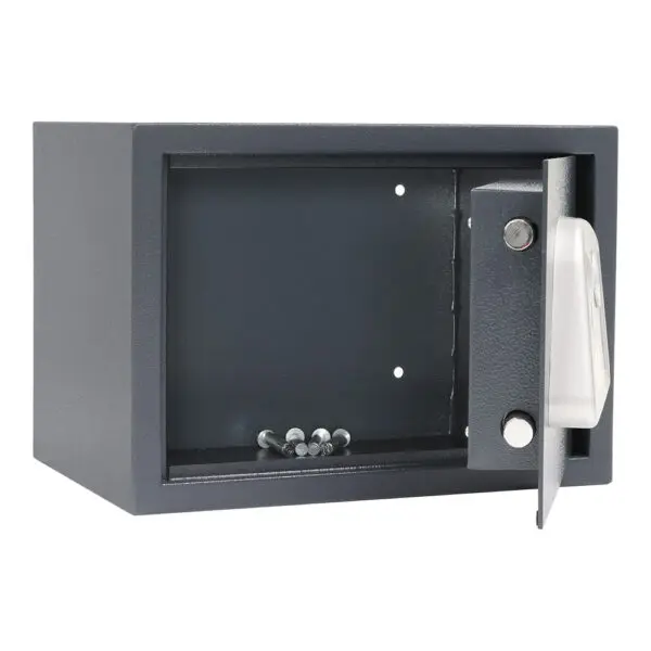 Ideal für Hotels, Pensionen und Ferienwohnungen: damit Ihre Gäste Dokumente, Bargeld und Wertgegenstände vor ungewollten Zugriffen schützen können, ist der anthrazitfarbene Rottner Möbelsafe Atlantis 1 perfekt. Der schlichte Möbeltresor lässt sich ganz einfach mit dem im Lieferumfang enthaltenen Montagematerial z.B. im Schrank befestigen und bietet mit seinem verstellbaren Elektronikschloss die bequeme Möglichkeit, den vom Gast gewählten Benutzer-Code einzuspeichern. Im Notfall kann der Tresor auch mittels Schlüssel geöffnet werden.