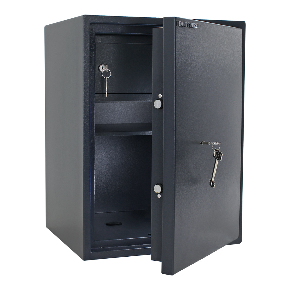 Zeitlos elegant und sicher ist der Rottner Möbeltresor PowerSafe 600 IT mit Doppelbartschloss. Für das einfach zu bedienende Schloss finden Sie 2 Schlüssel im Lieferumfang, falls Sie einen verlegen oder verlieren sollten. Im Inneren befinden sich ein verstellbarer Fachboden und ein extra versperrbarer Innentresor. Sie haben ausreichend Platz für Ihre Wertgegenstände, Schmuck und Dokumente. Das passende Montagematerial finden Sie im Lieferumfang und ist für die vorschriftsmäßige Verankerung vorgesehen.