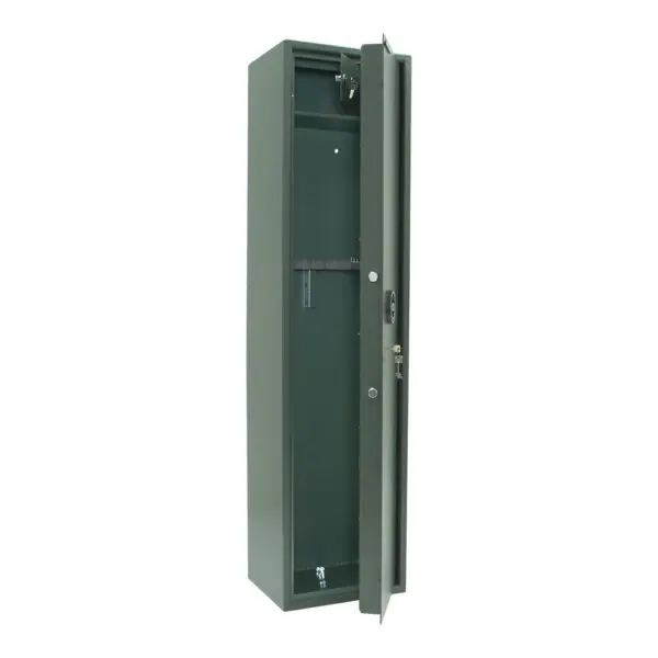 Der einwandige Waffenschrank Select 8 S1 von Rottner Tresor zeichnet sich durch seine Sicherheitsstufe S1 nach CSN EN 14450 aus, darf jedoch in Deutschland nur als Munitionsschrank verwendet werden. Im Inneren ist Platz für bis zu 8 Langwaffen, serienmäßig ist der Waffen- und Munitionsschrank mit einem Innentresor ausgestattet, der sich für Munition oder Zubehör eignet. Das Doppelbartschloss verschließt den Waffenschrank mit einer 3-seitigen Bolzenverriegelung.