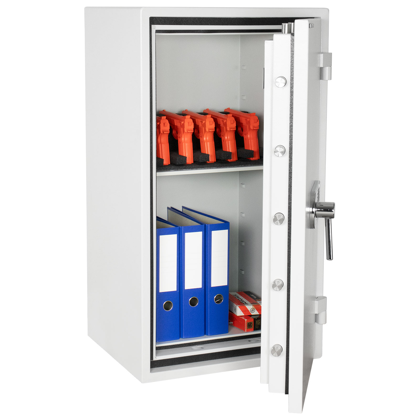 Mit 60 Minuten Feuerschutz für Papier und geprüftem Sicherheitsschutz ist der Fire Master 100 ausgestattet, was ihn zu einem sehr sicheren Wertschutzschrank macht. Der klassische Papiersicherungsschrank schließt durch ein Elektronikschloss und verfügt über einen Fachboden, der Ihnen die Aufteilung der Dokumente/Wertgegenstände erleichtert. Bei schwacher Batterie kann das Elektronikschloss notbestromt werden, eine mechanische Schlüsselöffnung ist nicht vorhanden. Für die fachgerechte Montage ist das Befestigungsmaterial im Lieferumfang enthalten, ebenso die 9 Volt Batterie für das Elektronikschloss. Vertrauen Sie auf Produkte aus dem Hause Rottner, wenn es um Sicherheit geht!