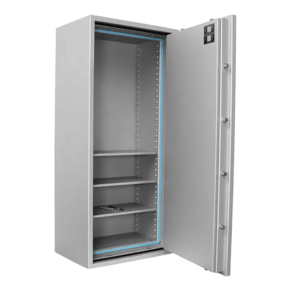 Der Rottner Papiersicherungsschrank EN1 Super Paper 160 Premium überzeugt unsere Kunden durch sein schlichtes Aussehen und seine Funktionalität. Dieses Modell verfügt über eine geprüfte Einbruchsicherheit der Klasse VdS-1 sowie einen geprüften Feuerschutz der Klasse S 60 P, beste Voraussetzungen für Sicherheit im Büro. 28 Ordner können Sie auf drei verstellbaren Fachböden unterbringen.