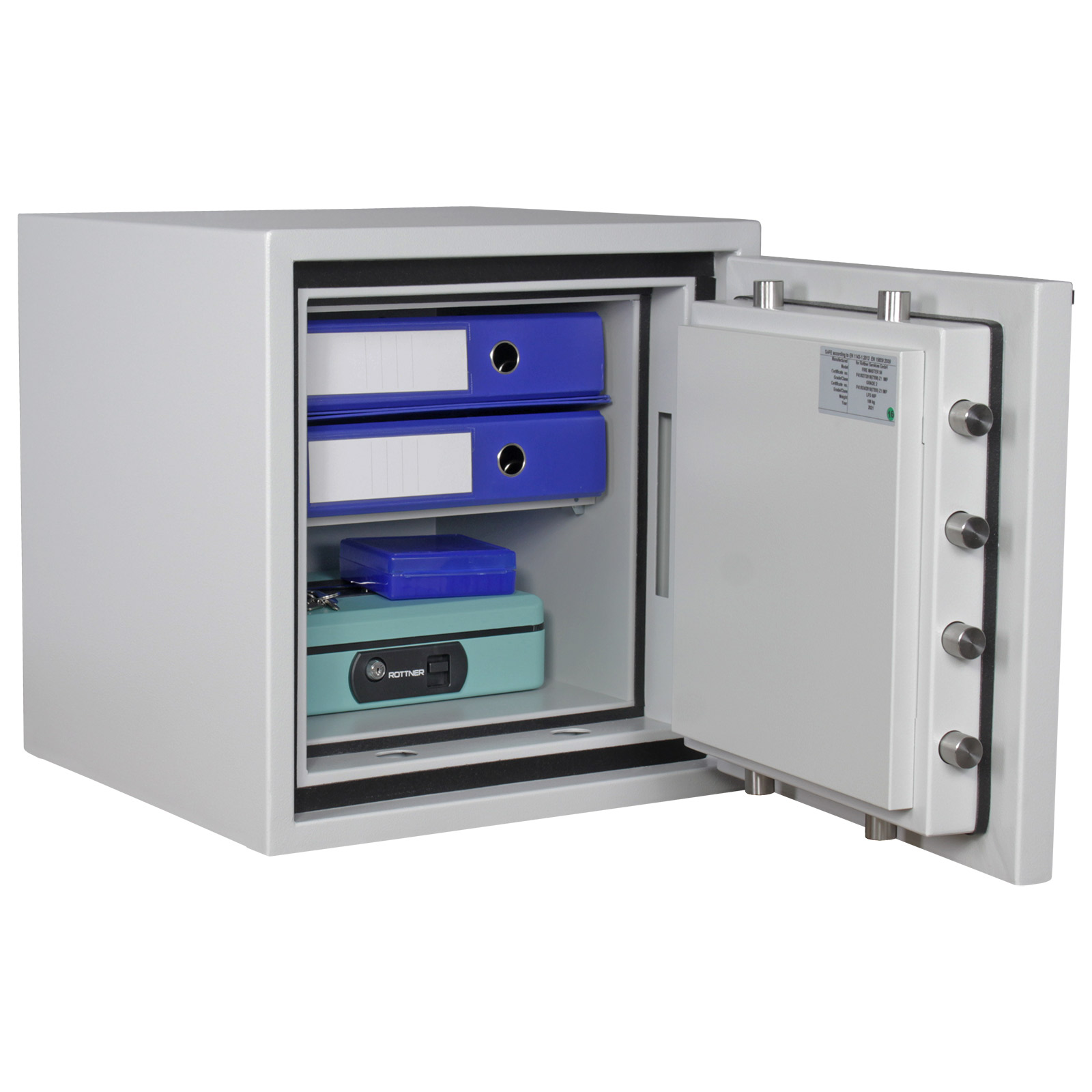 Schreibe die erste Bewertung für „Rottner Papiersicherungsschrank EN2 Fire Master 50 Doppelbartschloss lichtgrau“