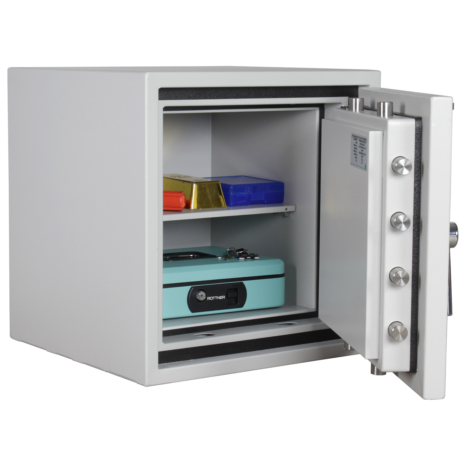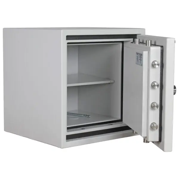 Mit 60 Minuten Feuerschutz für Papier und geprüftem Sicherheitsschutz ist der Fire Master 50 ausgestattet, was ihn zu einem sehr sicheren Wertschutzschrank macht. Der klassische Papiersicherungsschrank schließt durch ein Elektronikschloss und ist mit einem Fachboden ausgestattet. Bei schwacher Batterie kann es notbestromt werden. Für die fachgerechte Montage ist das Befestigungsmaterial im Lieferumfang enthalten, ebenso die 9 Volt Batterie für das Elektronikschloss. Vertrauen Sie auf Produkte aus dem Hause Rottner, wenn es um Sicherheit geht!