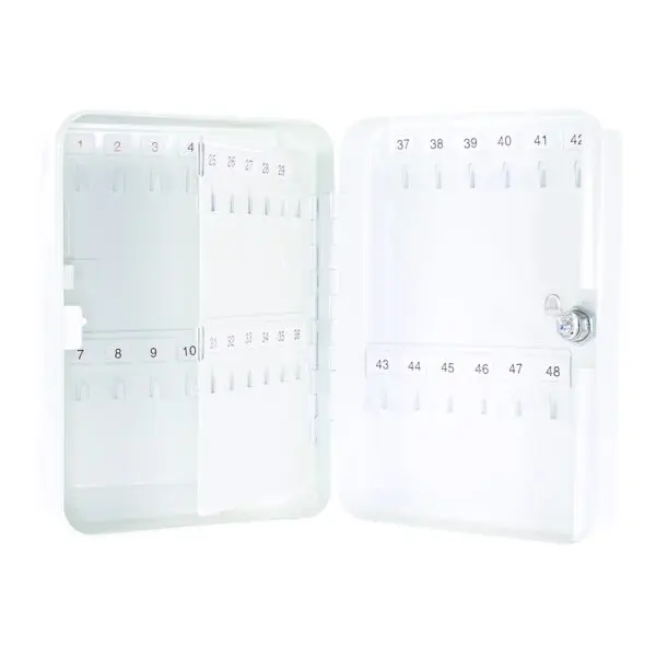 Wo sollen Ihre Schlüssel hin? Natürlich in die Schlüsselkassette TS 48 aus Stahlblech von Rottner Tresor! 48 Schlüssel bringen Sie auf den fortlaufend nummerierten Hakenleisten unter. Die Schlüsselkassette schließt mit einem Zylinderschloss und ist für die Wandmontage vorgesehen. Eine ordentliche und sichere Schlüsselverwahrung. Sie verschwenden keine Zeit mehr mit einer unnötigen Schlüsselsuche. Auch alle anderen Personen in Ihrem Umfeld, die Zugang zu dieser Schlüsselkassette haben, wissen, wo Sie Ihre Schlüssel sicher hinterlegen können.