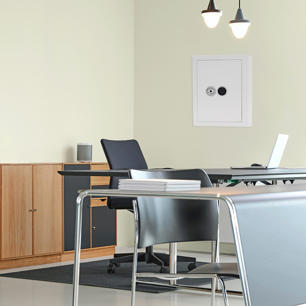 Der Rottner Schlüsseltresor STS 150 Elektronik Premium aus hochwertigem Stahl besitzt die Sicherheitsstufe EN1 und verfügt über einen leichten Feuerschutz. Somit ist er der ideale Platz zur Aufbewahrung Ihrer Schlüssel. Die Steckwand ist eine perfekte Lösung, um den Innenraum individuell, den Schlüsseln angepasst, gestalten zu können. Falls sich das Elektronikschloss nicht öffnen lässt, kann es notbestromt werden, um zu den Schlüsseln zu gelangen. Das Montagematerial ist bereits im Lieferumfang enthalten.