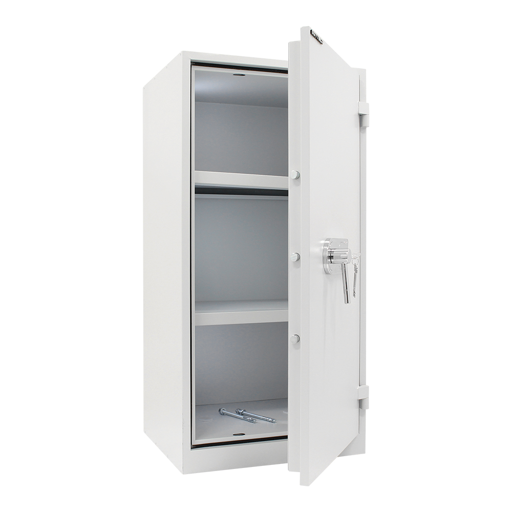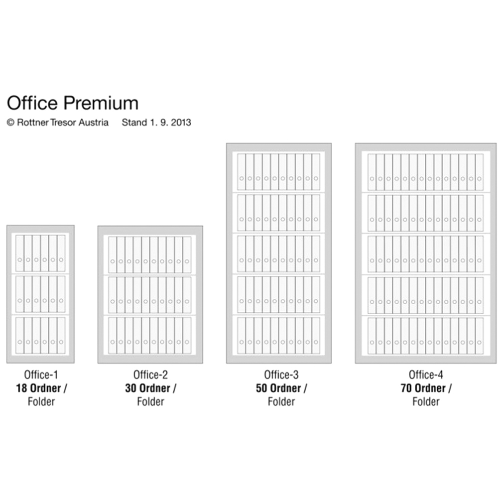 Der Rottner Stahlbüroschrank Office 1 Premium sorgt für Sicherheit und Schutz für Ihre Dokumente, Wertpapiere und Polizzen in Ihrem Büro. Der erstklassige, zeitlose Stahlbüroschrank mit zwei Fachböden bietet für bis zu 18 Ordner Platz und schließt mit einem leicht zu bedienenden Doppelbartschloss. Das für die geprüfte Montage benötigte Material finden Sie im Lieferumfang des Tresors vor. Ein Stahlschrank, wie er in keinem Büro fehlen sollte!