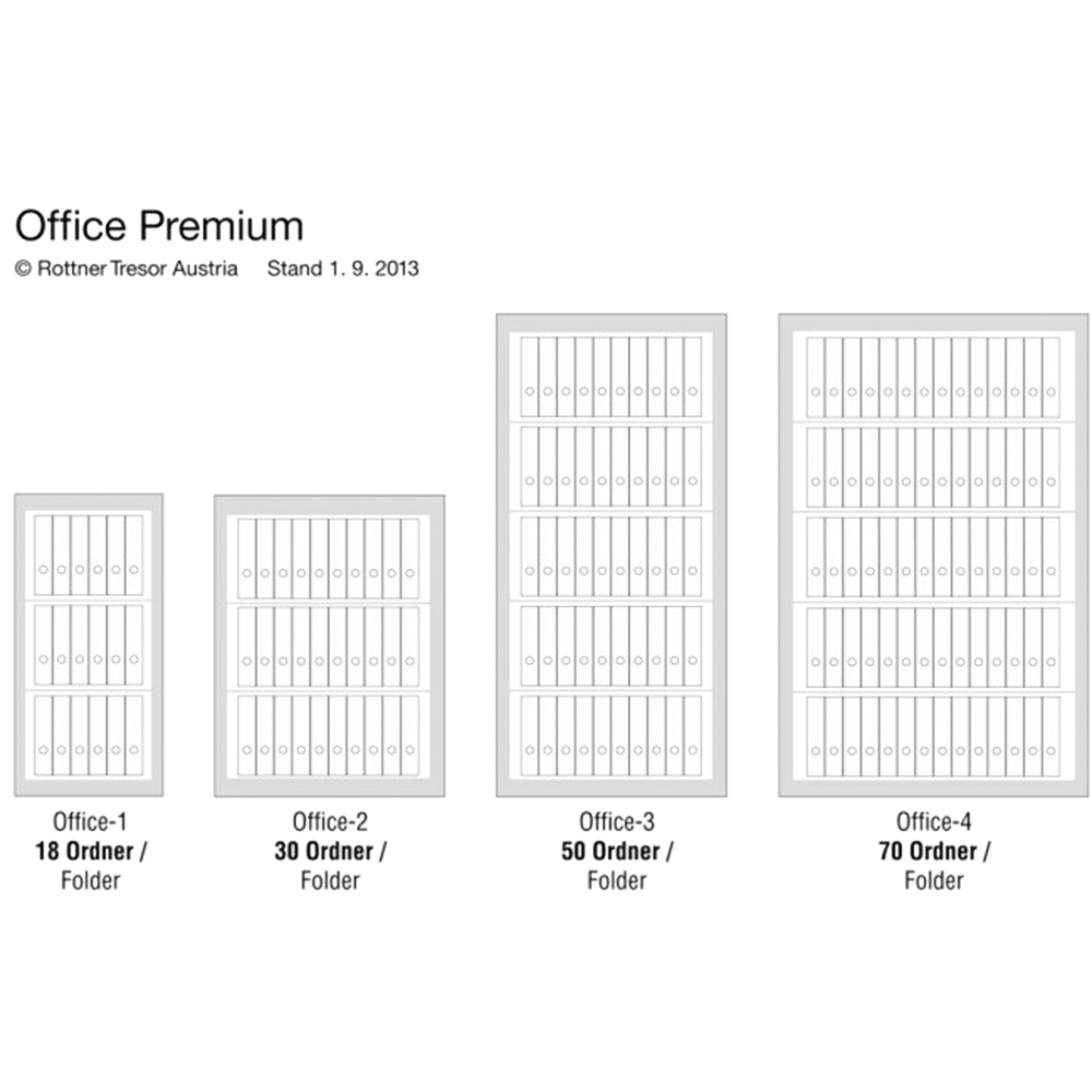 Der Rottner Stahlbüroschrank Office 2 Premium sorgt für Sicherheit und Schutz für Ihre Dokumente, Wertpapiere und Polizzen in Ihrem Büro. Der erstklassige, zeitlose Stahlbüroschrank mit zwei Fachböden bietet für bis zu 30 Ordner Platz und schließt mit einem leicht zu bedienenden Doppelbartschloss. Das für die geprüfte Montage benötigte Material finden Sie im Lieferumfang des Tresors vor. Ein Stahlschrank, wie er in keinem Büro fehlen sollte!