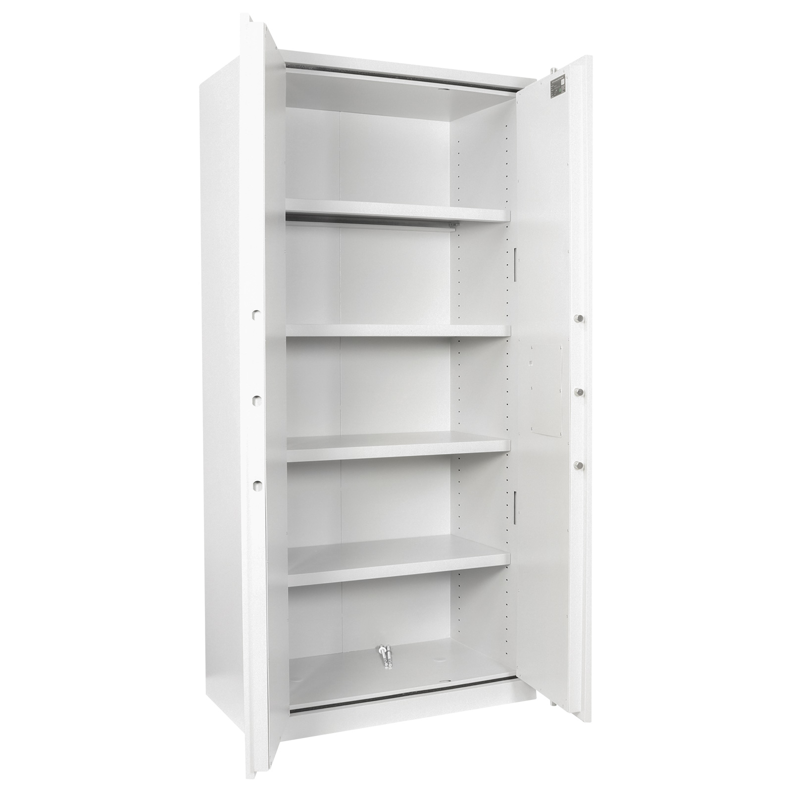 Der Rottner Stahlbüroschrank Office 3 Premium sorgt für Sicherheit und Schutz für Ihre Dokumente, Wertpapiere und Polizzen in Ihrem Büro. Der erstklassige, zeitlose Stahlbüroschrank mit vier Fachböden bietet für bis zu 50 Ordner Platz und schließt mit einem leicht zu bedienenden Doppelbartschloss. Das für die geprüfte Montage benötigte Material finden Sie im Lieferumfang des Tresors vor. Ein Stahlschrank, wie er in keinem Büro fehlen sollte!