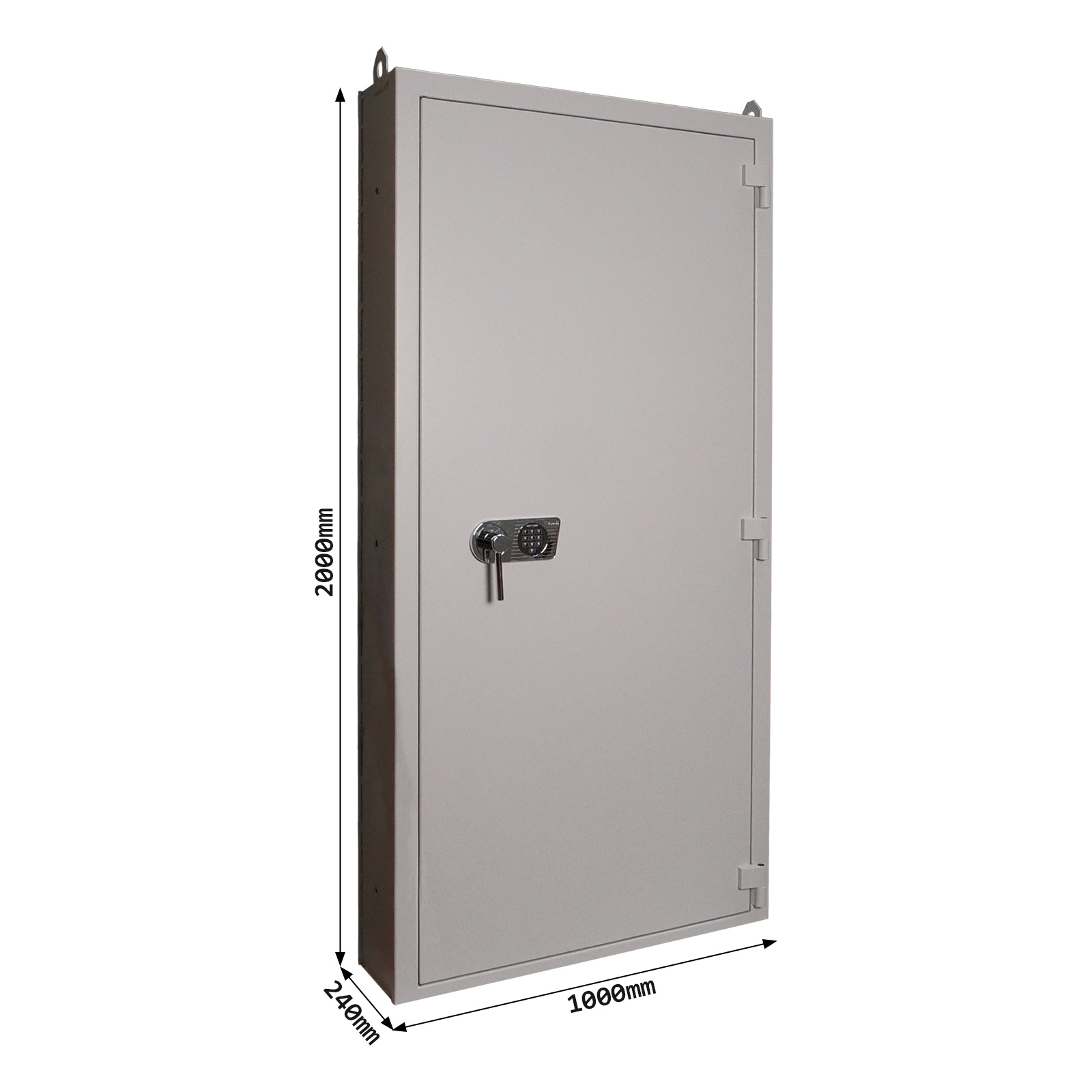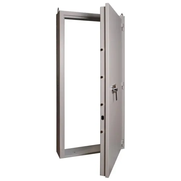 Sichern Sie Ihren Wertschutzraum mit einer einbruchgeprüften Sicherheitstüre! Die mehrwandige Sicherheitstür (schwere Bauart) wurde aus hochwertigem Spezialstahl gefertigt. Die Tür verfügt über eine vierseitige Bolzenverriegelung und schließt durch Elektronikschloss ohne Schlüsselöffnung. Es kann aber durch Notbestorumg geöffnet werden.