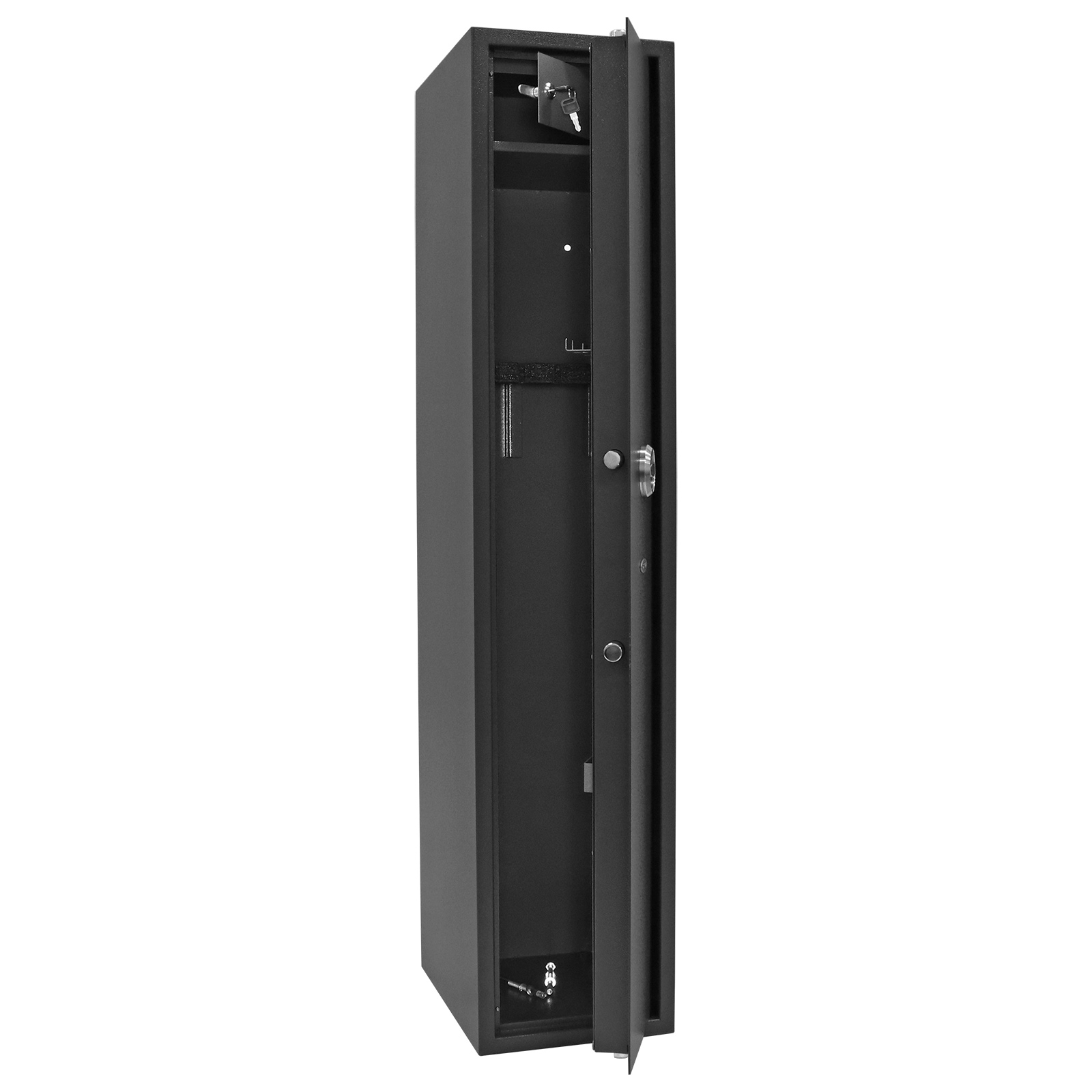 Der Rottner Waffenschrank Fifty Gun ist ideal zur Lagerung von 5 Langwaffen und Munition. Seine Besonderheit ist die Öffnung über das Handy, das von Rottner Tresor als erstes Smart Schloss für Tresore, Waffenschränke und Briefkästen entwickelt wurde. Über die App können Sie verschiedene Einstellungen vornehmen – z.B. wie Sie den Tresor öffnen möchten. Dies ist mit Annäherung, Fingerprint, One-Click oder Passwort möglich. Im Notfall lässt sich das Schloss immer noch durch einen Schlüssel öffnen, sodass Sie auf alle Fälle Zugang zu Ihrem Tresorinhalt haben. Ihre Langwaffen finden Halt in den Schaumstoffwaffenhaltern und Munition oder Zubehör lassen sich im Innentresor mit Zylinderschloss separat versperren. Für eine fachgerechte Montage ist das Befestigungsmaterial inkl. Freuen Sie sich auf ein neues Sicherheitsprodukt aus dem Hause Rottner.