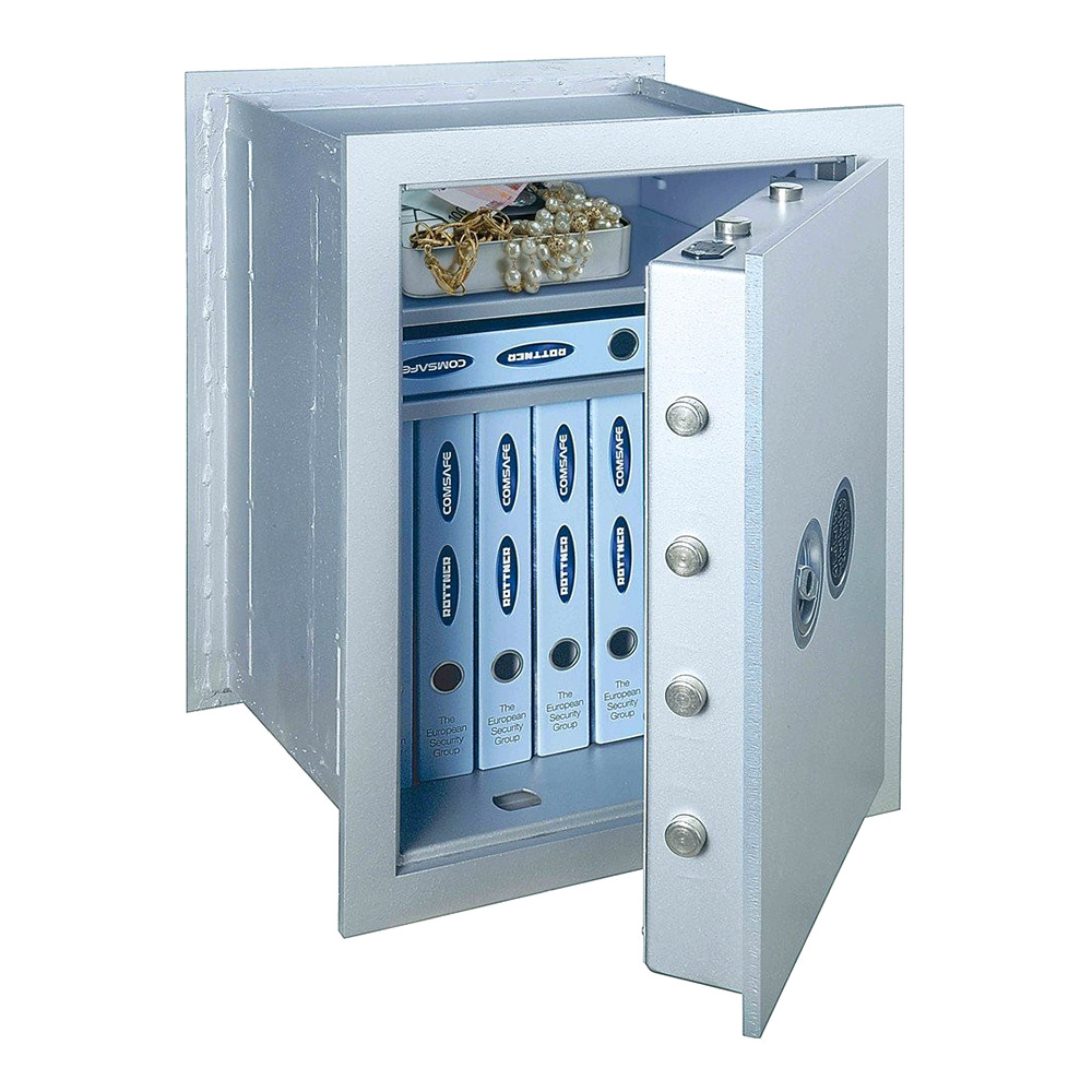 Wenn Sie Ihre Wertgegenstände vor ungewollten Zugriffen optimal schützen wollen, vertrauen Sie dem Wandtresor Stone GSE 70 Premium mit zertifiziertem Einbruchschutz. Der Wandtresor schließt mit einem mechanischen Zahlenkombinationsschloss und besitzt im Inneren zwei Fachböden. Beachten Sie bitte die Einmauervorschriften für Wandtresore