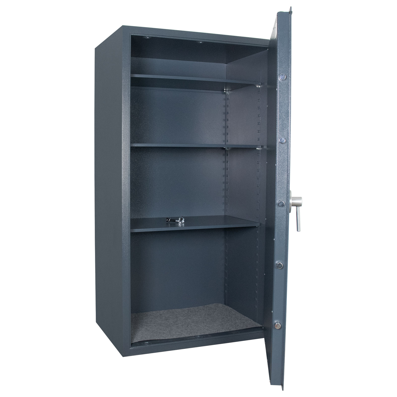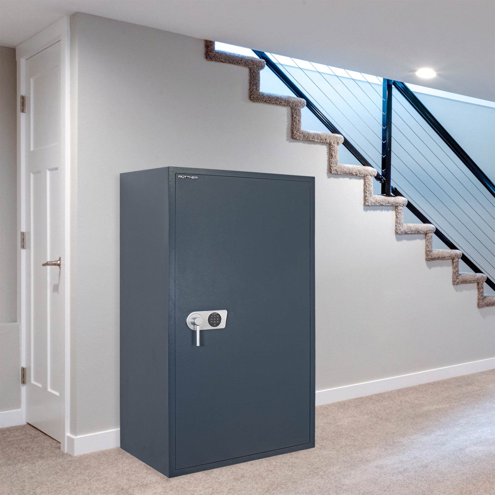 Sicherheit für Ihre Wertsachen im Eigenheim bietet der Rottner Wertschutzschrank Samoa 160. Der massive Tresor wurde den Richtlinien der Sicherheitsklasse EN-0 entsprechend geprüft und bietet auch einen begrenzten Feuerschutz. Die drei Fachböden sind verstellbar, sodass Sie Ihre Wertgegenstände leichter unterbringen möchten. Der Samoa 160 mit Elektronikschloss bietet viel Sicherheit und kann aufgrund der Sicherheitsstufe auch zur Waffenlagerung verwendet werden. Im Notfall kann das Elektronikschloss notbestromt werden, Schlüsselöffnung besitzt es nicht.