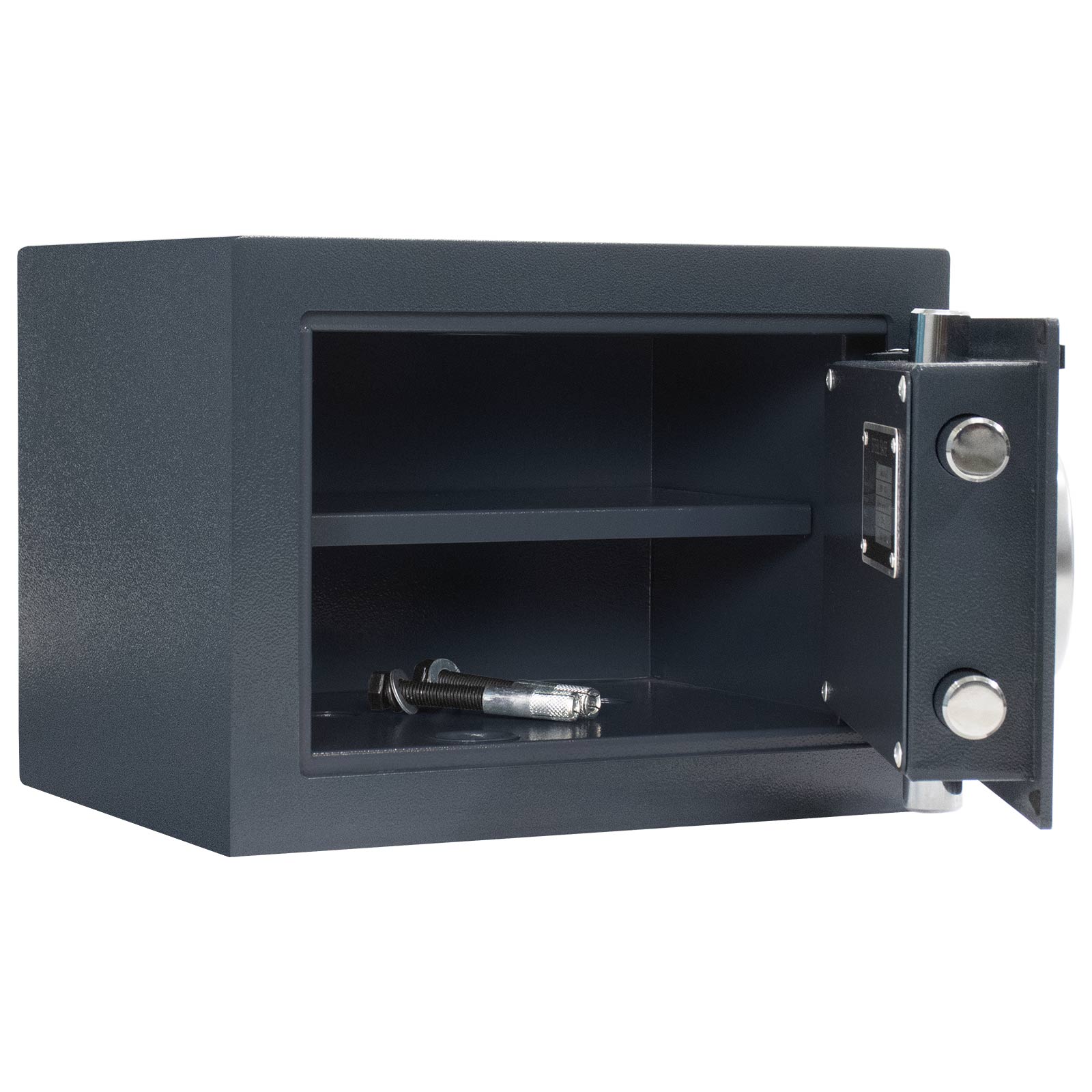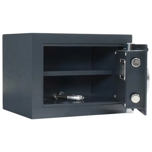 Der Rottner Wertschutzschrank Samoa 26 mit Doppelbartschloss entspricht den Bestimmungen der Sicherheitsklasse EN-0 und bietet auch einen begrenzten Feuerschutz, da sich ein Feuerfalz in der Türöffnung befindet. Aufgrund der Sicherheitsstufe können auch Waffen gelagert werden. Sein Doppelbart-Hochsicherheitsschloss wird durch einen Schlossschutzpanzer aus Mangan-Hartstahl geschützt und ist einfach zu bedienen. Der Fachboden kann nicht verstellt, aber herausgenommen werden. Das für die Verankerung geprüfte Material finden Sie im Lieferumfang.