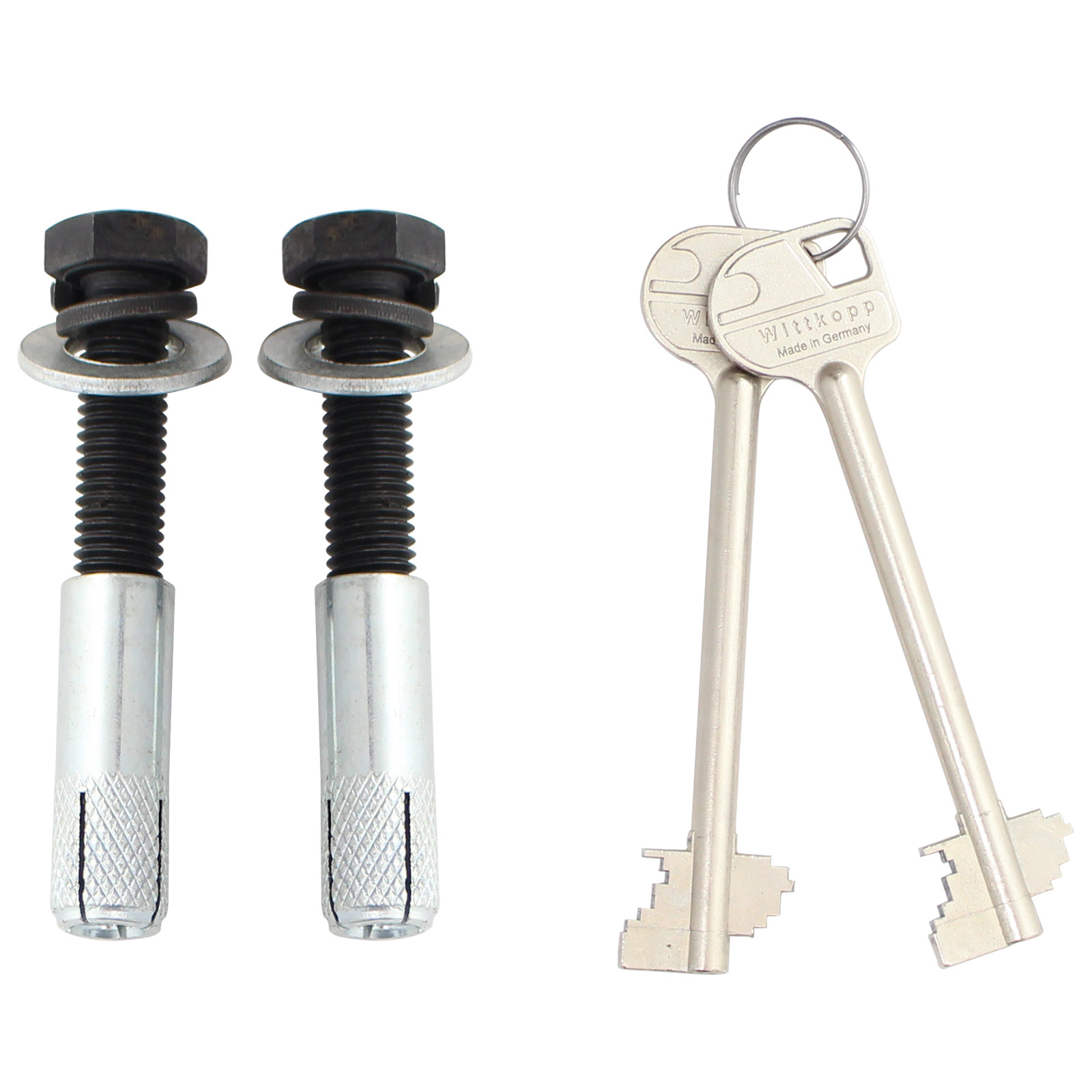 - Doppelbart-Hochsicherheitsschloss EN 1300 Klasse A mit Schlossschutzpanzer aus Mangan-Hartstahl