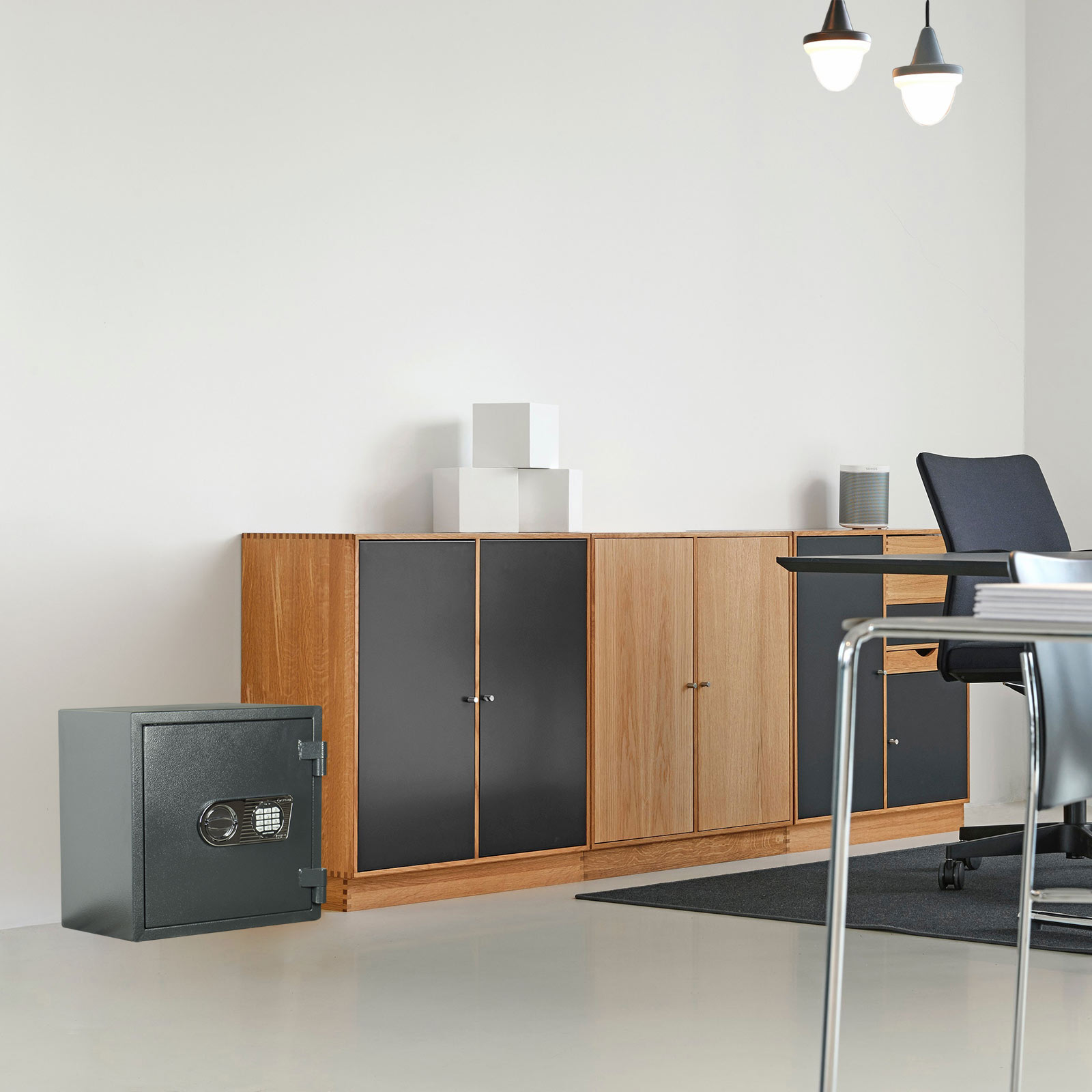 Wertgegenstände, Schmuck, Dokumente, Sparbücher oder auch Kurzwaffen fühlen sich im Rottner Wertschutzschrank EN1 Atlas 45 Fire besonders sicher. Der Tresor ist mit einem 30 minütigem Feuerschutz für Papier ausgestattet und besitzt einen zertifizierten Einbruchschutz. Der Fachboden im Inneren ist verstellbar und bietet Platz für 5 Ordner. Das Elektronikschloss kann bei Problemen notbestromt werden, sodass Sie sicher zu Ihrem Inhalt gelangen. Für die fachgerechte Montage ist das benötigte Befestigungsmaterial inkl.