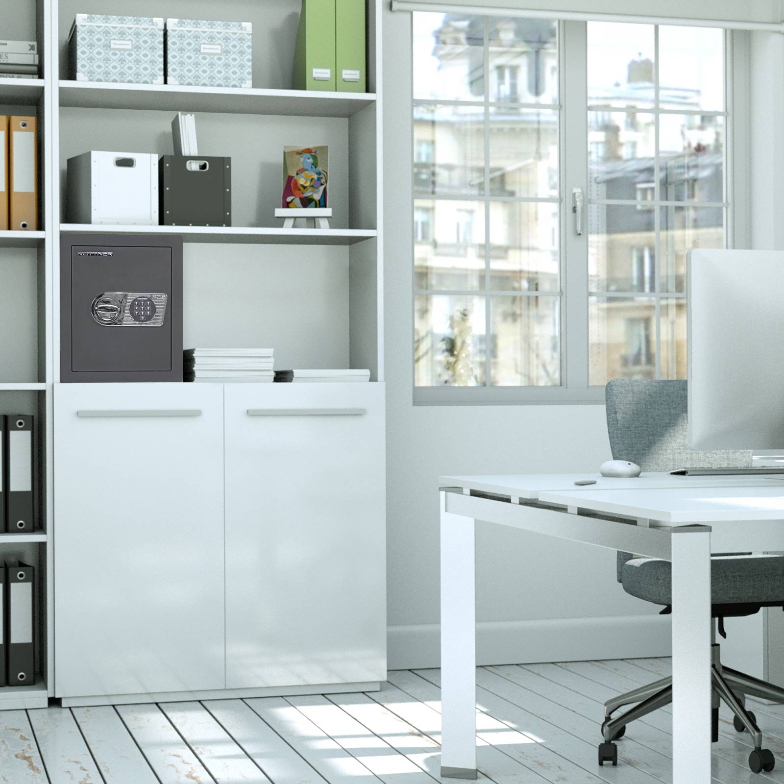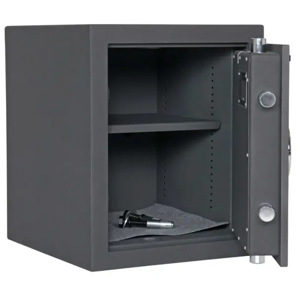 Der Rottner Wertschutzschrank Toscana 50 ist ein kleiner, der Sicherheitsstufe EN-1 nach CSN EN-1 1143-1 entsprechender Tresor mit bedingtem Feuerschutz durch ringsumlaufenden Feuerfalz. Das batteriebetriebene Elektronikschloss ist einfach in der Bedienung und kann notbestromt werden, besitzt jedoch keine Schlüsselöffnung. Für den leichten Überblick über die Wertgegenstände und Dokumente in seinem Inneren sorgt der verstellbare Fachboden. Auch die Lagerung von Kurzwaffen ist aufgrund der Sicherheitsstufe erlaubt. Mit dem Toscana 50 haben Sie den optimalen Schutz für Ihre Dokumente und Wertpapiere.