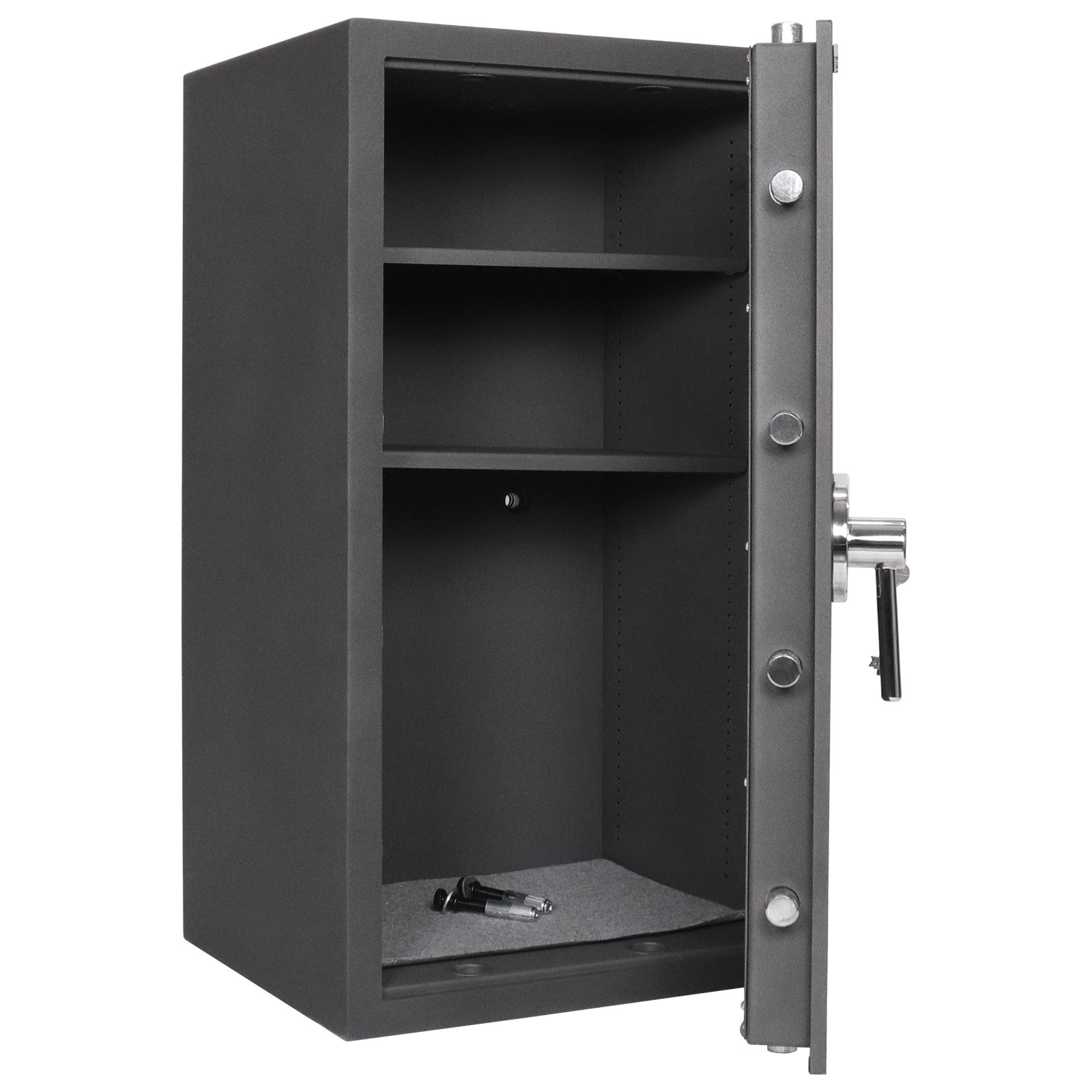 Der Rottner Wertschutzschrank Toscana 85 ist ein der Sicherheitsstufe EN-1 nach CSN EN-1 1143-1 entsprechender Tresor mit bedingtem Feuerschutz durch ringsumlaufenden Feuerfalz. Das Doppelbart Sicherheitsschloss mit Aufbohrschutz und 2 Schlüssel ist einfach zu bedienen. Für den leichten Überblick über die Wertgegenstände und Dokumente in seinem Inneren sorgen die beiden verstellbaren Fachböden – bis zu 10 Ordner finden Platz. Auch die Lagerung von Kurzwaffen ist aufgrund der Sicherheitsstufe erlaubt. Mit dem Toscana 85 haben Sie den optimalen Schutz für Ihre Dokumente und Wertpapiere.