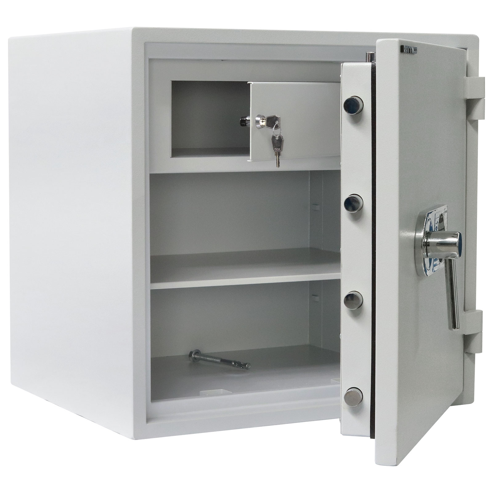 Der Rottner Wertschutzschrank Opal Fire OPD 65 Premium mit Elektronikschloss ist ein verlässlicher Partner wenn Sie Ihre Wertgegenstände und Dokumente sicher verwahren möchten. Der Wertschutzschrank hat eine kompakte Größe und ist gegen Aufpreis mit Sonderausstattungen erhältlich. Der Schrank ist ein zertifizierter Möbeltresor der Sicherheitsklasse EN-1 und verfügt über einen Feuerschutz von 30 Minuten. Bis zu 9 Ordner haben in diesem Schrank Platz und können auf zwei verstellbaren Fachböden untergebracht werden. Im Innentresor können Sie zusätzlich Wertvolles verschließen.