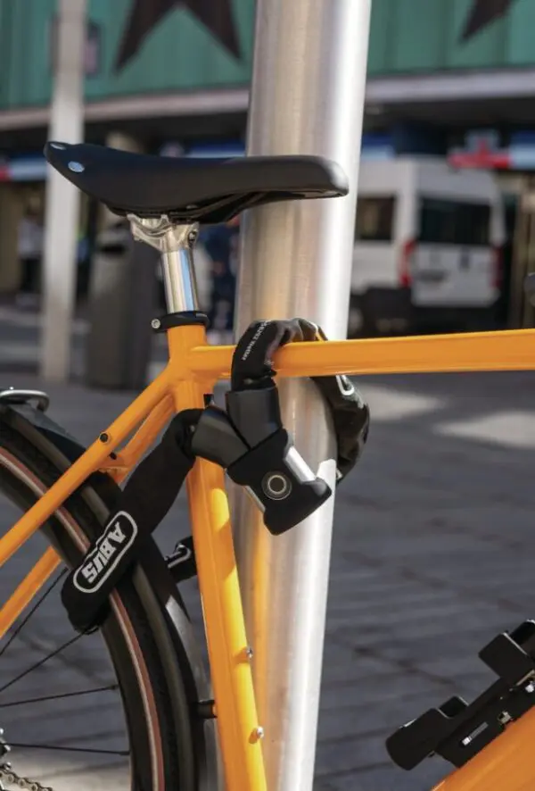 Damit keine Kratzer am Fahrradrahmen entstehen können, ist der Schlosskörper mit einem Silikon-Cover umhüllt. Die IP66 und IP68 Zertifizierung attestiert, dass der Schlosskörper staubdicht und wetterfest ist. Eine doppelte Kugelverriegelung sorgt für verbesserten Schutz gegen gewaltsames Aufbrechen.